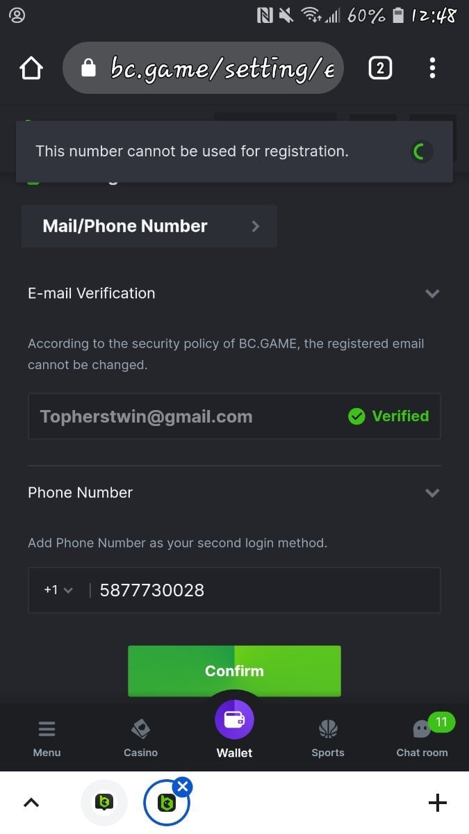 3. https://bc.game/#/sd/1173GJYP3I8IS3 https://bc.game/#/sd/1173GXPZWDN0GJ https://bc.game/#/sd/1173HIL62XLIJ7 https://bc.game/#/sd/1173IDZXHQML1V https://bc.game/#/sd/1173ILQN0GVKLV https://bc.game/#/sd/1173IYCDHCIG43 https://bc.game/#/sd/1173JKZTD9K9HV https://bc.game/#/sd/1174S8UGYXY87N 2FA IS ENABLED, EMAIL VERIFIED AND # WONT ALLOW EVEN THOUGH IM IN CANADA