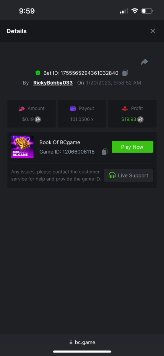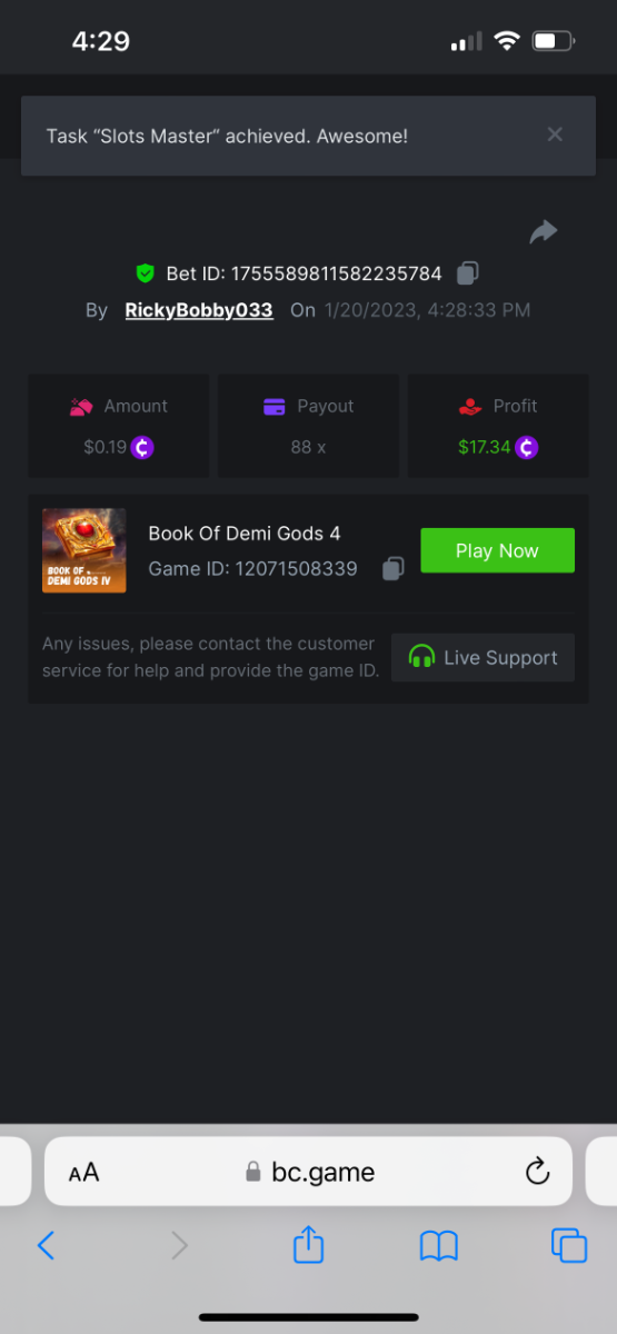 8. Tasks completed: */30 Easy: */10 Medium: */10 Hard: */10 Easy https://bc.game/#/sd/117JNXAGTUBB4J https://bc.game/#/sd/117JO3CWYZQUC3 https://bc.game/#/sd/117MWLNPXINZMB. https://bc.game/#/sd/117MXGYSHJG64Z Get a 20x payout on the Oriental Beauties. Win a Cave of Plunder bet on 7.50x payout (Completing all book symbols). Win a Sports bet with minimum odds being 1.5x (singles only) 1$ base min amount. Get a minimum 20x multi on BGaming Hello Easter slot. Get a minimum 30x multi on Red Tiger Lucky Easter slot. DONE Medium Win a bet in Roulette Single with betting on 0 only (36x). (no spread bets) Get a 76x on Plinko. Win 99x multi on Ring of Fortune. (no spread bets) Win a Sports bet with minimum odds of 2x (singles only) 1$ base min amount. Win a bet with Straight Flush in Video Poker (60x). Win a bet on Keno Single by selecting numbers 7, 30, and 8, Medium risk. (50x). Win a bet by getting a natural Blackjack(A+K/Q/J/10) with only red cards in it. Get a minimum 90x multi on BGaming Easter Heist slot. Get a minimum 100x multi on Play&Go Easter Eggs slot. Get a minimum 100x multi on No Limit City Bonus Bunnies slot. Hard Get a 49.50x on Wheel (50 segments, High risk). https://bc.game/#/sd/117N1QC7IHUPLF Win with a minimum 500x multi on Limbo. https://bc.game/#/sd/117J76NFEKACR7 Win with a minimum 999x on Crash. Post a winning bet with 21 mines and 3 diamonds on Mines game, (569.25x). Win a bet on Keno Single by selecting numbers 10, 11, 12 and 13, High risk, (259.00x). Get at least 300x multi on Pragmatic Play Rabbit Garden slot. Get a minimum 300x multi on Wazdan Burning Sun Easter slot. Win a Sports bet with minimum odds of 10x (any bet allowed) with 1$ base min amount.