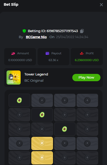 $2k Prestige Tower Legend Challenge #27 ♜ Ladies and gentlemen, I give you KONG! Oops, I mean Tower Legend. This week we're going to have a Challenge with a new game just released on the platform. The total prize is $2,000 and will be split with the players. We're looking forward to seeing the highest multipliers in the game. Activate your Gorilla mode, unleash the beast and never stop until you're at the Top! What's the Challenge? Win the highest multiplier you can on in-house Tower Legend (Any difficulty is valid). If there is a tie, the player with the higher average bet amount (in USD) shall be the winner. If there is a tie in the amount and payout, the one who posted or edited his post first will be considered in the Ranking. Minimum VIP There's no minimum VIP level Minimum Payouts Minimum payout to qualify is 15x Minimum Bet Size $0.10 USD equivalent Eligible Coins All cryptocurrencies are eligible (excepting JB) Available Prizes 1st Place....... $500 2nd Place..... $300 3rd Place...... $200 4th Place......$100 5th Place......$50 6th-10th.........$30 The remaining $700 will be split between all other players who meet minimum requirements, min payouts, and minimum bet. How to Enter To enter, copy the link of the bet you'd like to submit. Once you've copied it, paste it as a reply to this thread like so: Link: https://bc.game/sd/?sd=10J7O1AT1QLKPF In the same post, upload a screenshot of your win by clicking the game ID WITH VIEW IN USD mode ENABLED (accessible at the bottom of dropdown menu for your wallet up top. This way, we can ensure that your bet indeed met the minimum requirement at the time of placing it: Link: https://bc.game/sd/?sd=10J7O1AT1QLKPF Please combine all of your hits together in a SINGLE post. Edit your existing post for additional hits, don't create a new post. Bets must be posted within 24 hours of placing bet in order to keep things fair for everyone. Bets must be made during the specified time window stated above. This thread will lock automatically when the time period is over. One (1) entry per household. Anyone found attempting to win multiple prizes will be disqualified from this challenge as well as all future challenges. Failure to follow instructions will result in your submission being null and void. By entering this challenge, you acknowledge that BC.Game has the final decision on results and placement. Payouts will be made within 72 hours of challenge completion, please be patient, we promise you that we haven't forgotten. We check and double check to make sure the rightful winners receive their prize. Prizes will be paid out in BCD. Best of luck, Dear players!