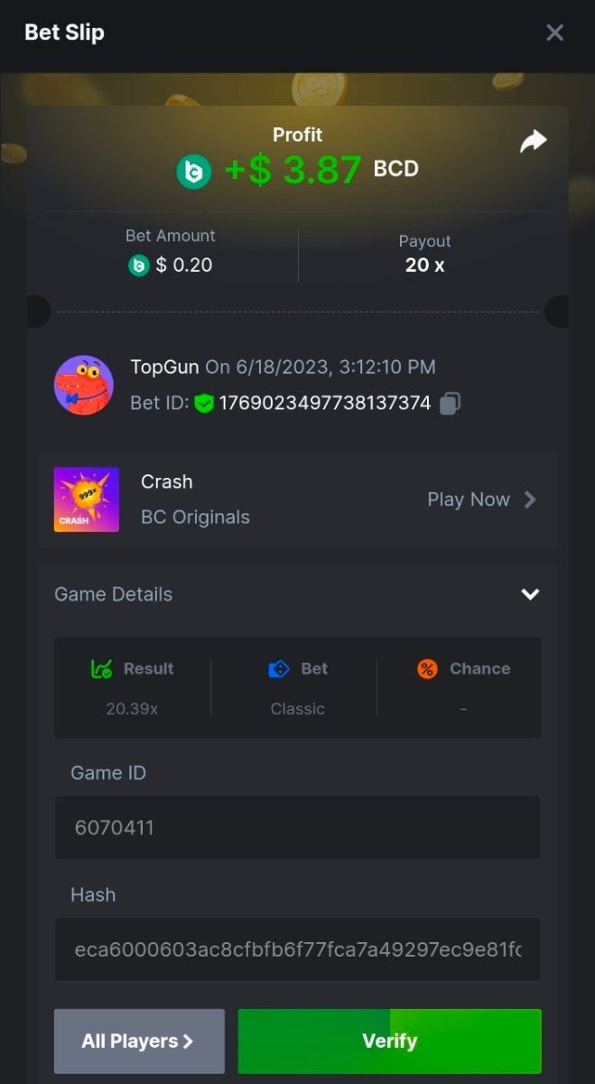3. 9x, 15.5x https://bc.game/#/sd/11ELP47T3W61W3 https://bc.game/#/sd/11EITU79AAS3TZ