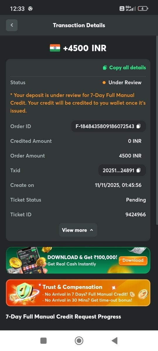 3. My deposit amount not received yet please my deposit amount credited quick