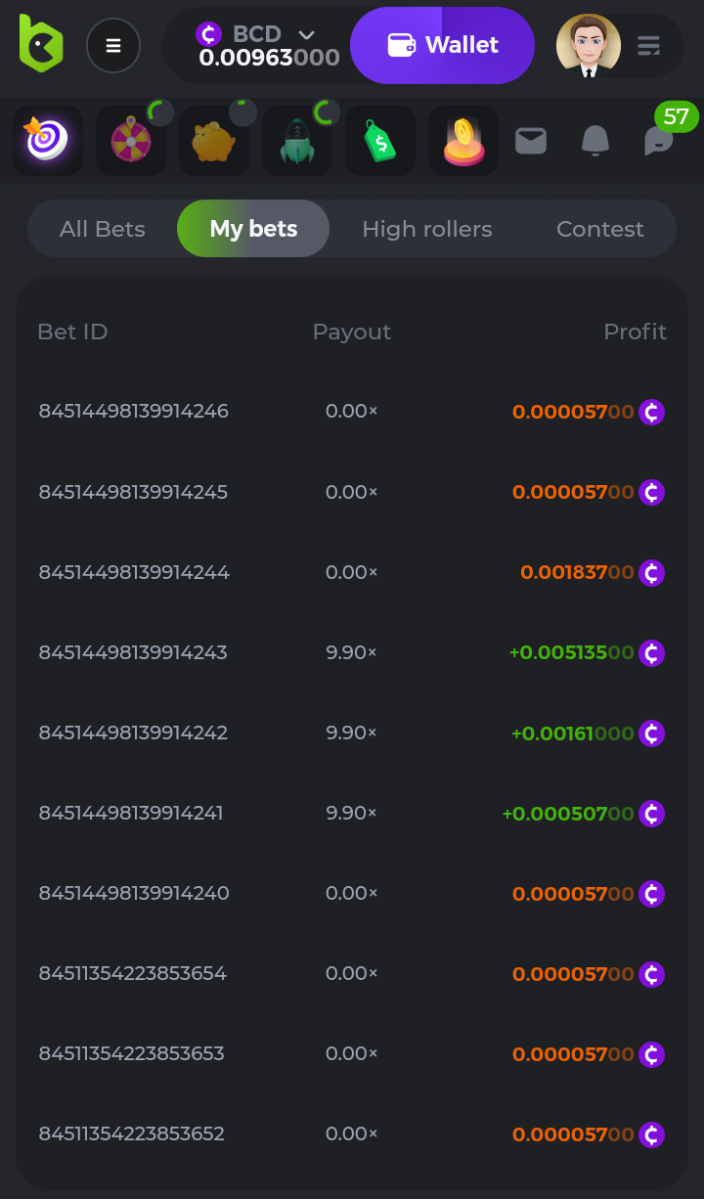 10. چالش : در این چالش هر ڪاربر مجاز است 3 شات با بیشترین تعداد ضریب 9.9 ایڪس متوالے در بازی لیمـبو را به اشتراڪ بگذارد . ڪاربرانے ڪہ بتوانند بالاترین مجموع ضرایب را ڪسب ڪنند برنده خواهند بود . چالش به این صورت است ڪہ ڪاربر 3 بار فرصت دارد ضرایب متوالے را ڪسب ڪرده و شات اسڪرین صفحہ مای بت (شرط های من) را به اشتراڪ بگذارد . مجموع (توالے ضرایب) 3 شات ڪاربر ، به عنوان امتیاز او در نظر گرفتہ خواهد شد . به عنوان مثال ، شما یڪ بار شات 4 ضریب متوالے و در شات بعدی 3 ضریب متوالے و برای آخرین فرصت خود ، 5 ضریب متوالے از 9.9 ایڪس را به اشتراڪ گذاشتہ اید . امتیــاز شما به صورت زیر محاســبـہ می شود : 4+3+5=12 points ──── ❖ ── ✦ ── ❖ ──── : شرایط چالش حداقل پایہ شرط : مینیموم تمامے ارزها به جز جی بی - ✫ حداقل سطح ڪاربر : تمامے لول ها- ✫ : نڪات مهم ڪاربر برای هر توالے ضریب ، مجـــاز بہ ارسال فقط 1 شات اسڪـــرین (از صفحہ مای بت) مے باشد .✪ از ارسال شاتہای اضافے و قدیمے برای یڪ ضریب ، خود دارے ڪنید .✪ ارسال تمامے لینڪ شرطہا بہ همراه شات اسڪـــرین الزامے مے باشد .✪ ادیت ریپلاے ها مجاز نمے باشد .✪ در صورت تساوی امتیازات ، بازیڪنے ڪہ پایہ شرط اولیـــن شرط (از آخرین شات ارسالے) بیشتر باشد (از نظر دلاری) برنده خواهد بود . اگر در امتیاز و پایہ شرط ها هم مساوی باشند ، ڪسے ڪہ اولین شات خود را زودتر ارسال ڪرده است در رتبہ بندے بالاتر در نظر گرفتہ مے شود . ═══════ ◦ ★ ◦ ═══════ جوایز نفر اول : برنده 50 دلار نفر دوم : برنده 25 دلار نفر سوم : برنده 15 دلار نفرات چہارم تا هفتم : نفری 5 دلار نفرات هشتم تا پانزدهم : نفری 2 دلار زمان پایان چالش : یڪشنبہ 20 شہریور / 11 سپتامبر ساعت 23:59 نڪتہ بسیار مہم : ڪمترین تعداد توالے قابل اشتراڪ ، 3 بار پیاپے مےباشد و ڪمترین امتیاز برای شرڪت در چالش، 9 امتیاز است . برای تعداد شات توالے ارسالے محدودیت حداقلے وجود ندارد ولے نہایتا 3 شات قابل ارسال است . اگر ڪاربرے بتواند در یڪ شات 9 امتیاز ڪسب ڪند ، در چالش شرڪت داده خواهد شد و یا براے دو شات ارسالے ، مجموع تعداد توالے 9 بار باشد نیز پذیرفتہ خواهد شد نمونه شرط ارسالی : https://bc.app/sd/?sd=10SMWE91ROO9HV https://bc.app/sd/?sd=10SMWFRDGKAWB7 https://bc.app/sd/?sd=10SMWG6YI8T4WJ دوستان عزیز دقت ڪنید در صورت تساوی امتیازات دو یا چند ڪاربر پایہ اولین بت از آخرین شات ارسالے لحاظ خواهد شد . به عنوان مثال در بتہای اشتراڪے من ، با فرض اینڪہ این شرطہا برای آخرین شات ارسالے من است ، پایہ بت مورد نظر برابر است با 0.000057 دلار . موفق و پرسود باشید ❤✌