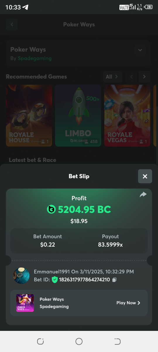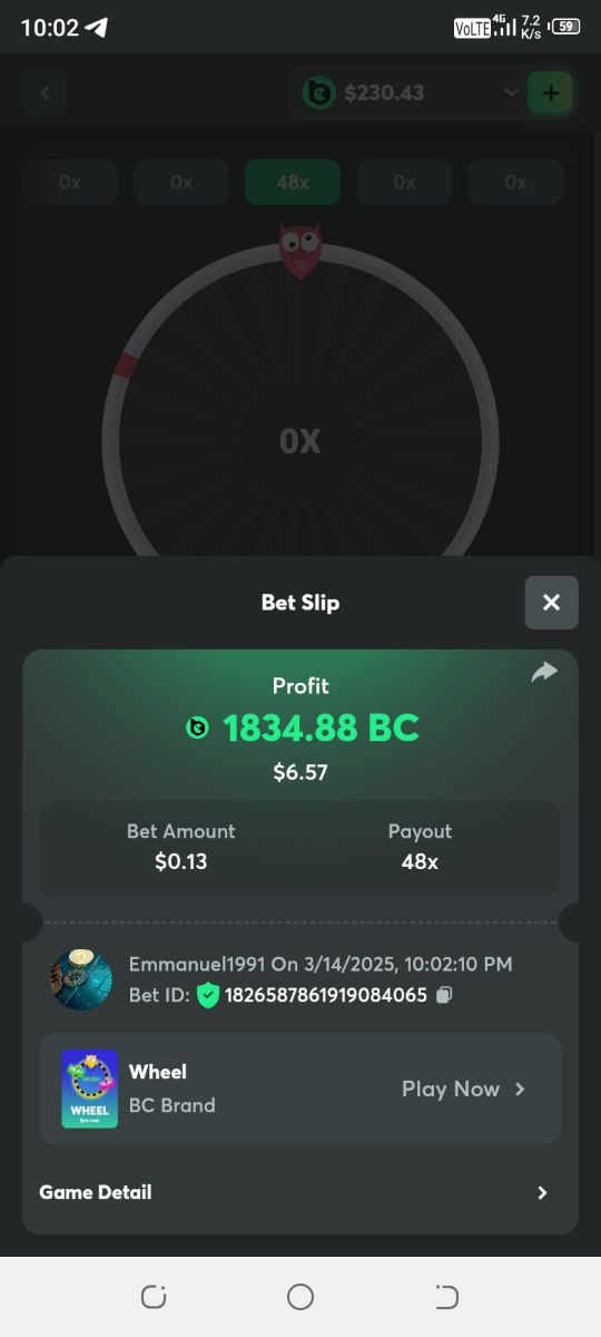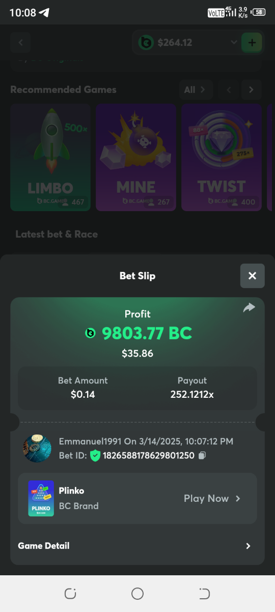 Emmanuel1991 replied to BCGame_Maxim's topic in VIP Challenges