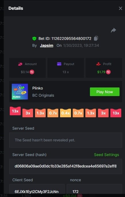 Easy 2. Instagram, IG Username : herrycaineng 4. Twiter Username : @HerryNeng 5. Twiter Username : @HerryNeng 6. https://www.facebook.com/herry.suto 7. Win a payout of 20x on the original Limbo game. 8. Win a Sports bet with a minimum payout of 1.5x odds (Only for single bets). 9. Get a 20x multi in the Arabian Secret slot game. 10. Get a 30x multi in the Sugar Fiesta 1000 slot game. 11. Activate 2FA security on your BC.Game account. Take a screenshot of 2FA and keep it active till the result is announced. Medium 3. Get a payout of 73.6x on the original Plinko game Risk-High, Row-10. 4. BC original Roulette Single game Win 36x on the on number 0. 10. Buy at least 2 BC Porsche lottery tickets using $BC Token send screenshot in forum post. HARD Win on Wheel 48x or higher - Row 50, Segment High.