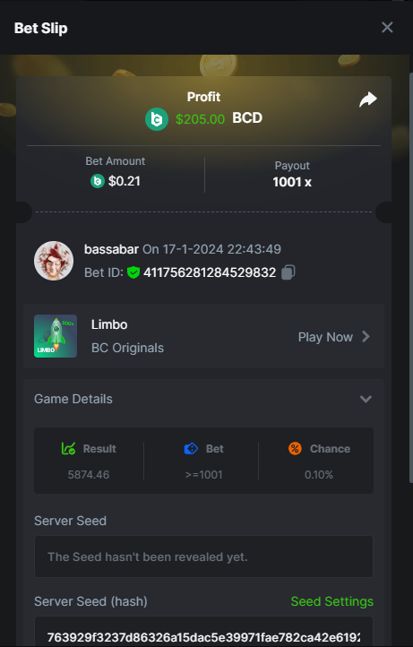 Hi @BCGame_Maxim I assume if it hit crash 999x it is still valid for that point and that I dont have to do hashdice instead? It took allot of coins to chase and hit that, it wouldnt be fair if that would be taken away. I understand there are issues now, but its not fair to those who already hit it before the issues. Tbh its a no go to change rules while the event is already running. -