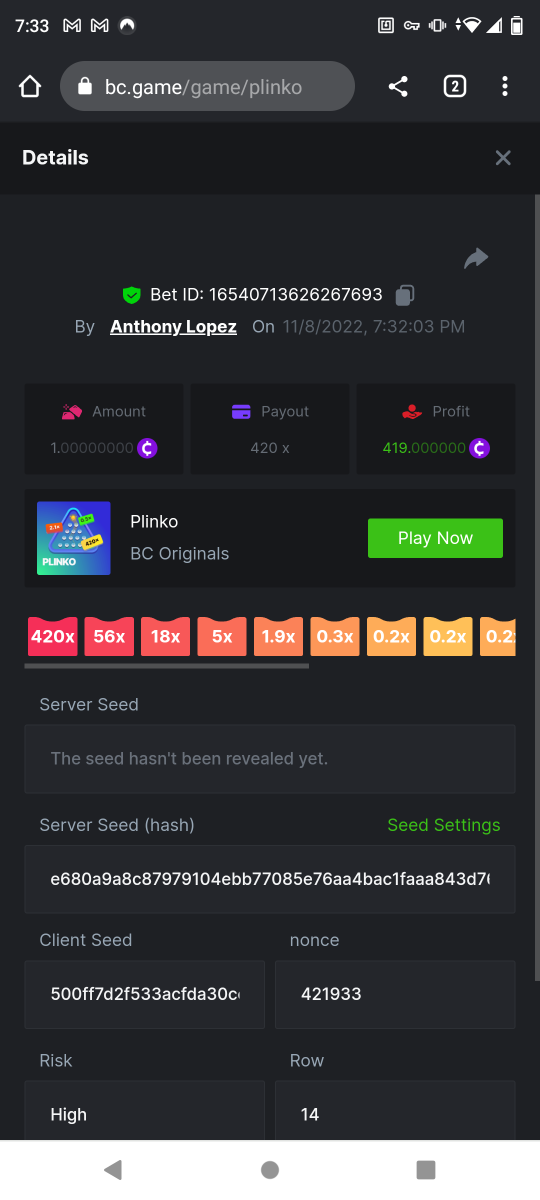 • Favorite Game Plinko