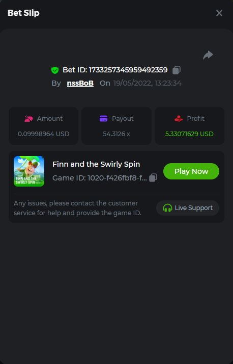 12. Finn and the Swirly spin -54.3x Bet ID: 1733257345959492359 https://bc.game/sd/?sd=10KUILLQFGIWWJ DOA 2 - 22.2x BET ID 1733252797432728583 https://bc.game/sd/?sd=10KUE4WY9COFTF