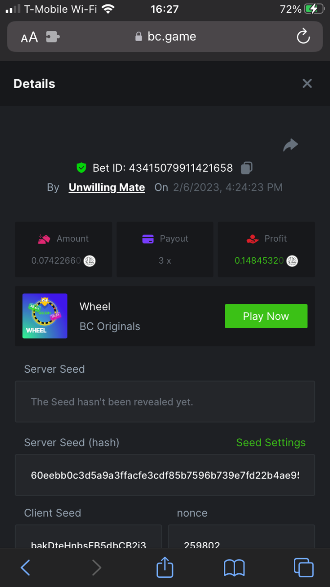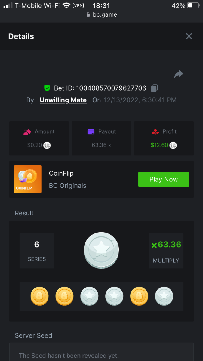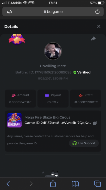 UnwillingNate replied to BCGame_Maxim's topic in VIP Challenges