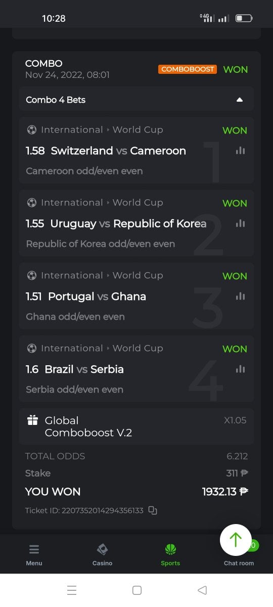 4. ticket id: 2209357099450896387 https://bc.game/sports?bt-path=%2F%3FbtBookingCode%3D98470D7