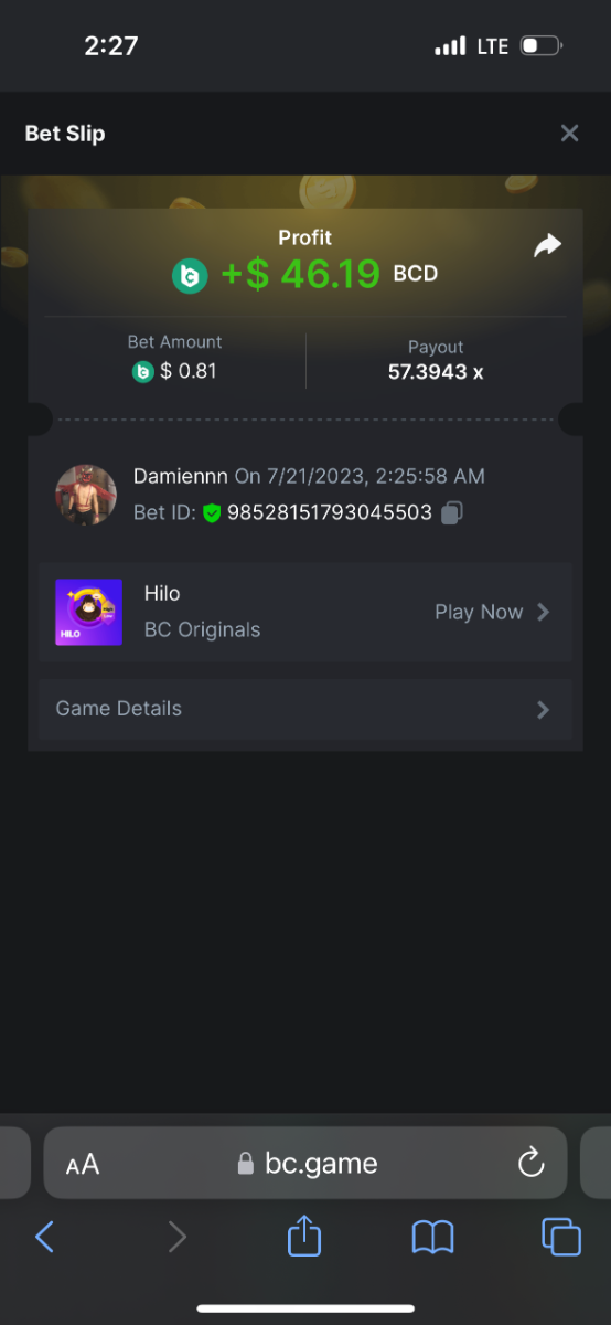 10. 57.3943x https://bc.game/#/sd/11EAGFYKUASWSZ $0.81 bet