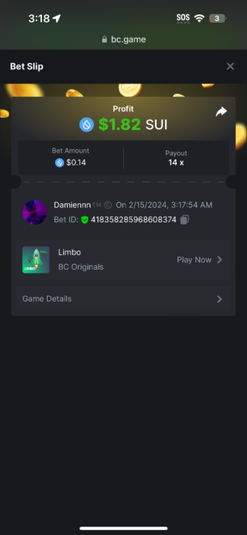 5. Limbo challenge ***$0.14 bet with a 14x - https://bc.game/#/sd/11SOJ7WU1USC5V