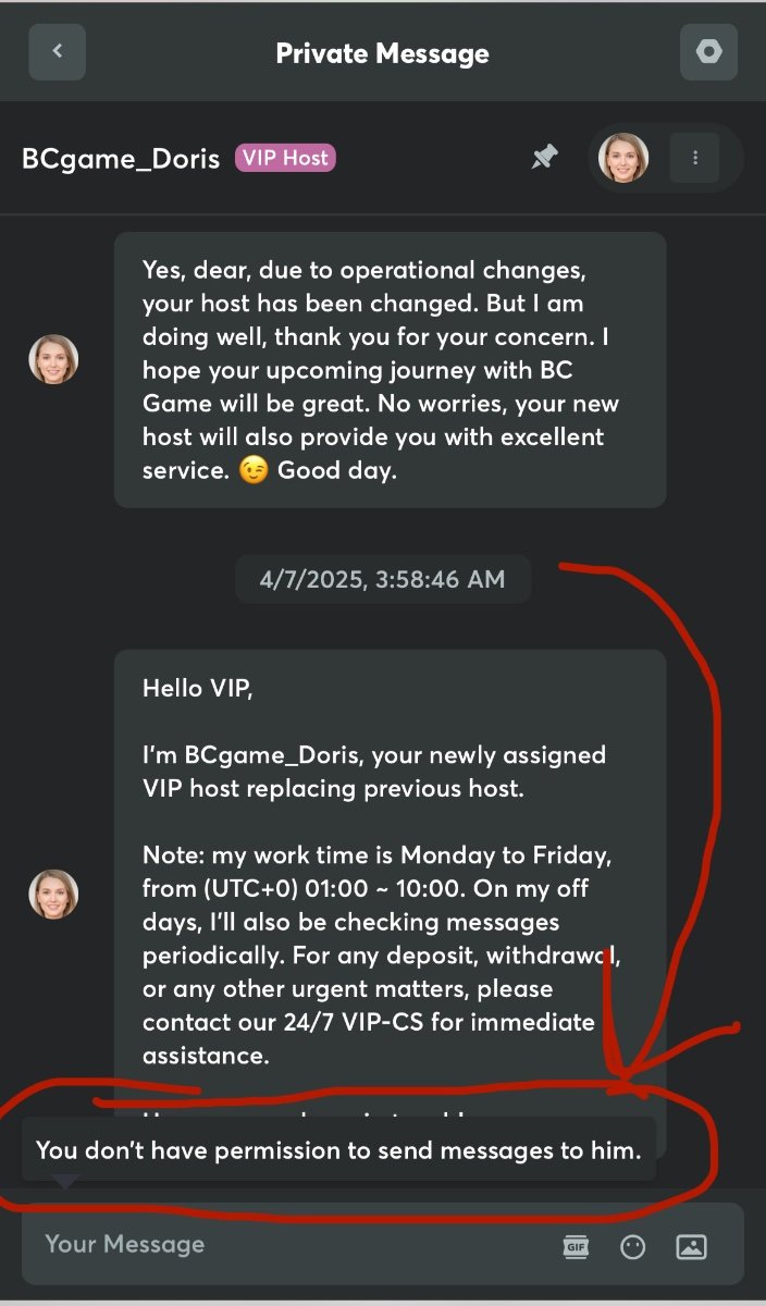 3. This same thing happened to me. I also have been with BC.Game for 4 years. I’m VIP 60 with 4k xp left to level up to VIP 61. I haven’t had the easiest time lately being able to wager or anything on bc.game. i got a notification about how my vip host services are going to be stopping. Due to not playing as much. Which is not fair. Considering the loyalty I have provided Bc.Game and how much I have actually deposited there. I earned the right to have my vip host a long while ago. It is part of the advantages of being loyal and raising to the level that I am now with VIP. on July 1st, (my birthday) I asked support about being able to get a birthday bonus and they told me no and that I no longer have vip host services. Which is so wrong, on multiple levels. A vip host is part of the rewards you get for playing at bc.game, which I 100% put in the time, money and work to be able to have these rewards. since they took away my host. I didn’t get a birthday bonus like I would normally. I used to get little bonuses here and there as an incentive to keep on playing at bc.game. Which honestly was awesome. But now… I get nothing. I’ve even deposited quite a bit lately and I don’t even get any lossback of the deposits that I have lost. Like what is the point of playing at bc game anymore. There is no incentives on playing there anymore. It’s such a shame. Truly.