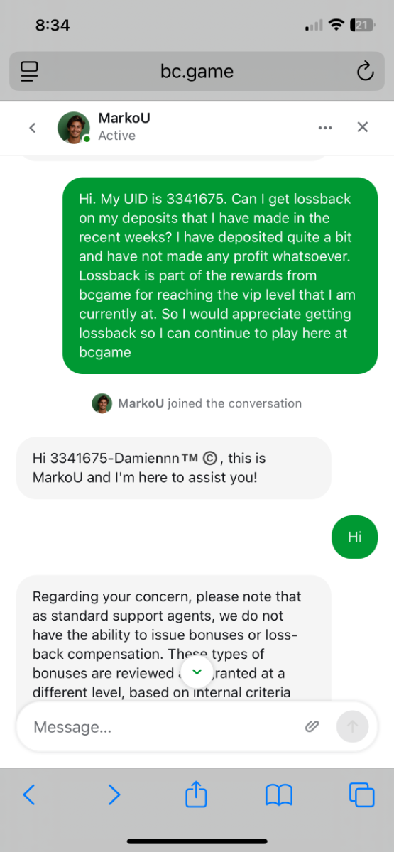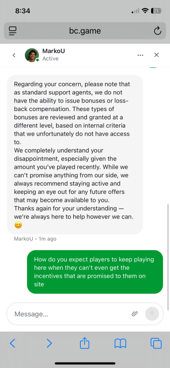 2. I saw another players post in feedback and I couldn’t have related more with this other player. The same thing is happening to him as what it happening to me. So my replay was this. This same thing happened to me. I also have been with BC.Game for 4 years. I’m VIP 60 with 4k xp left to level up to VIP 61. I haven’t had the easiest time lately being able to wager or anything on bc.game. i got a notification about how my vip host services are going to be stopping. Due to not playing as much. Which is not fair. Considering the loyalty I have provided Bc.Game and how much I have actually deposited there. I earned the right to have my vip host a long while ago. It is part of the advantages of being loyal and raising to the level that I am now with VIP. on July 1st, (my birthday) I asked support about being able to get a birthday bonus and they told me no and that I no longer have vip host services. Which is so wrong, on multiple levels. A vip host is part of the rewards you get for playing at bc.game, which I 100% put in the time, money and work to be able to have these rewards. since they took away my host. I didn’t get a birthday bonus like I would normally. I used to get little bonuses here and there as an incentive to keep on playing at bc.game. Which honestly was awesome. But now… I get nothing. I’ve even deposited quite a bit lately and I don’t even get any lossback of the deposits that I have lost. Like what is the point of playing at bc game anymore. There is no incentives on playing there anymore. It’s such a shame. Truly.