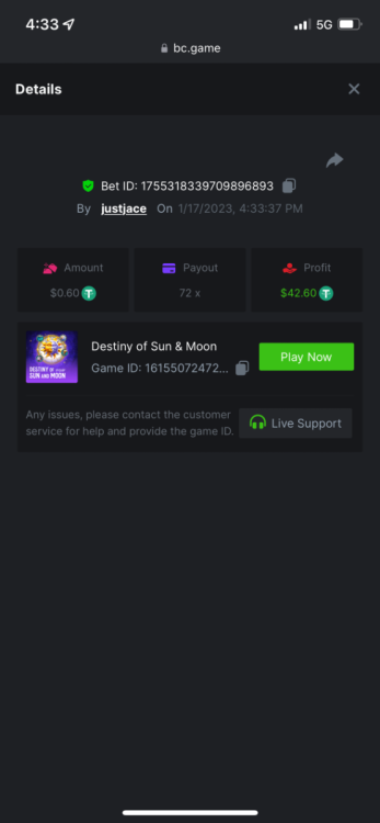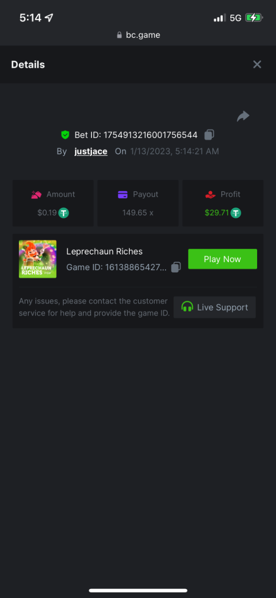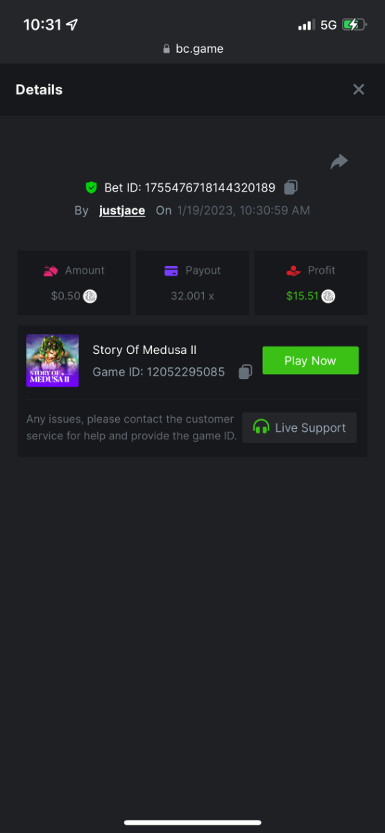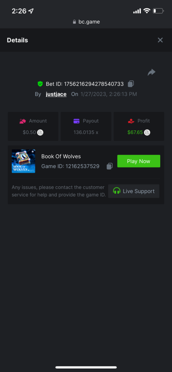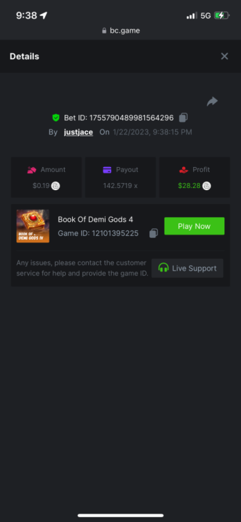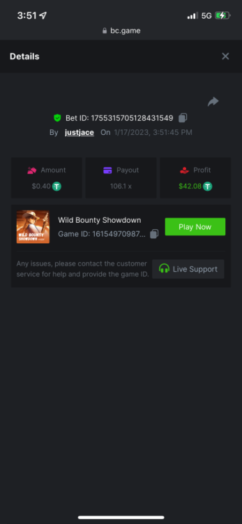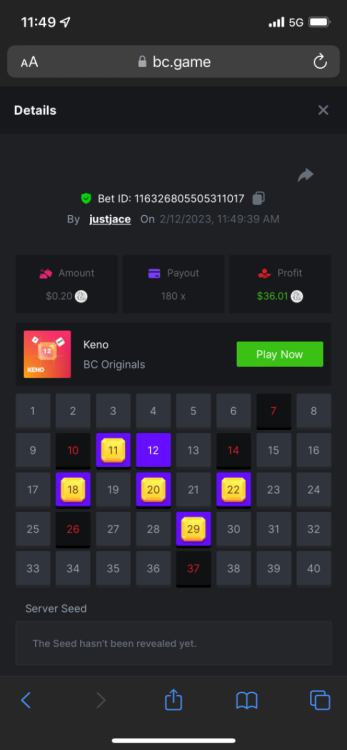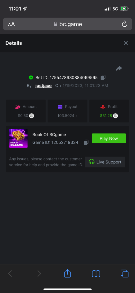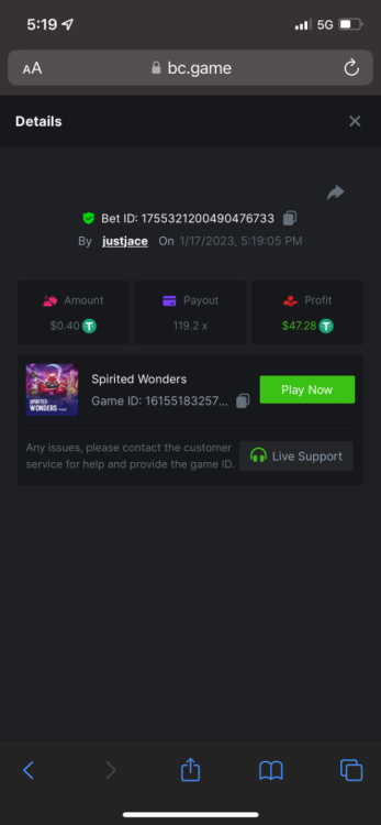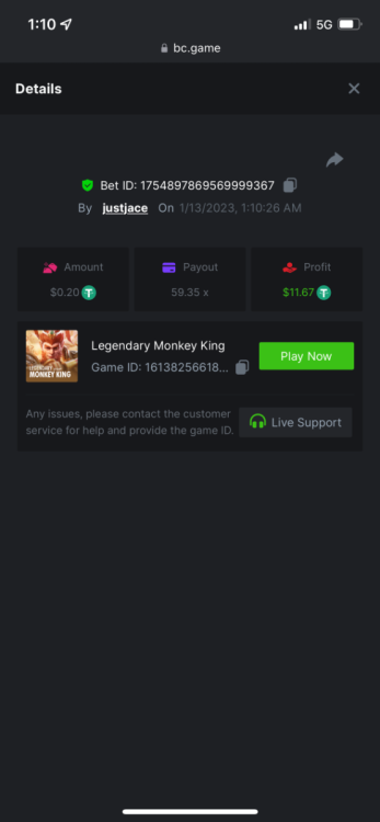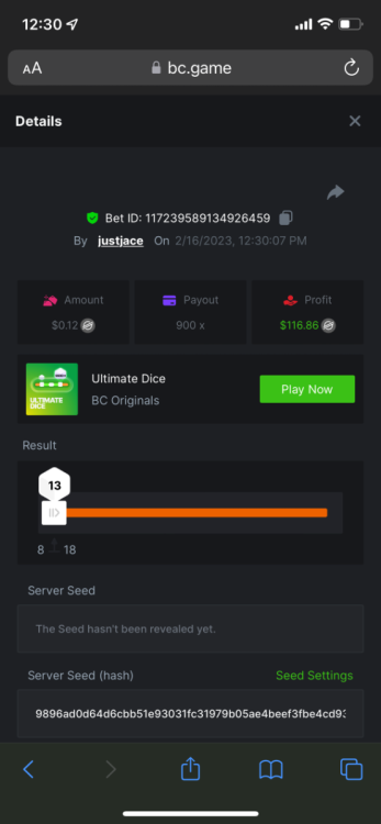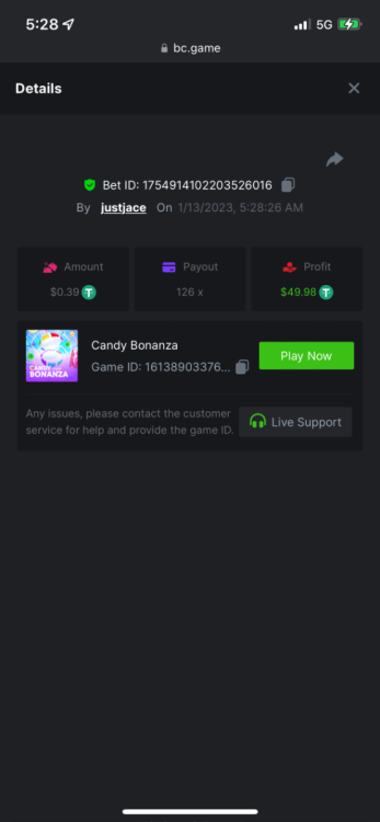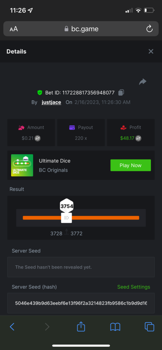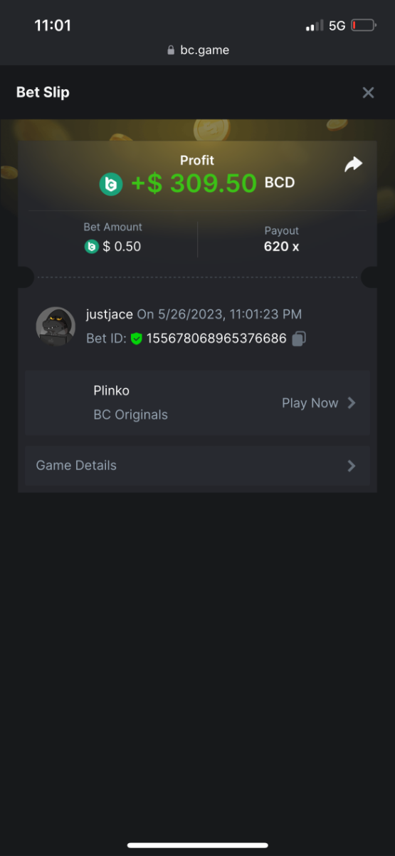 5.1x : https://bc.game/#/sd/1138ZN41M803RN 11x: https://bc.game/#/sd/1138ZWV6Q4I0IB 100x: https://bc.game/#/sd/113DU4H2V30MQB 180x: https://bc.game/#/sd/113DUHFTXSW4K3 63x: https://bc.game/#/sd/113E3M85OJT1XV -