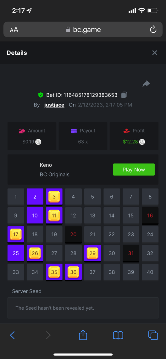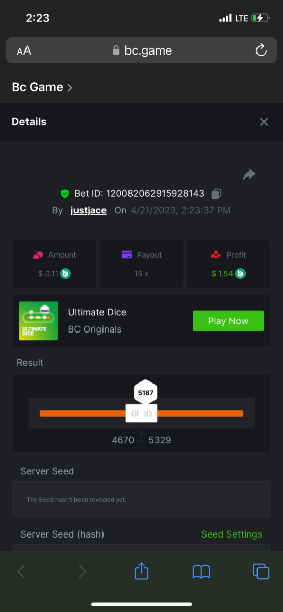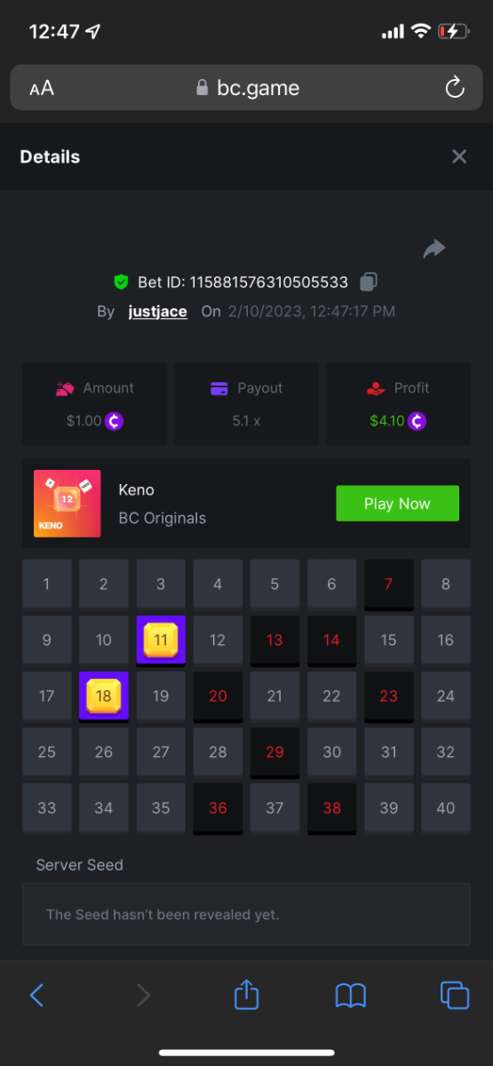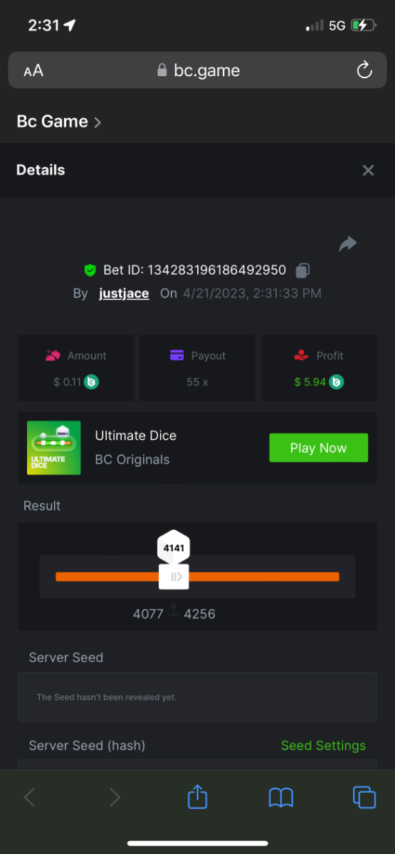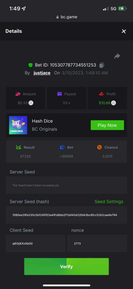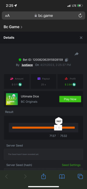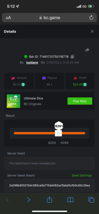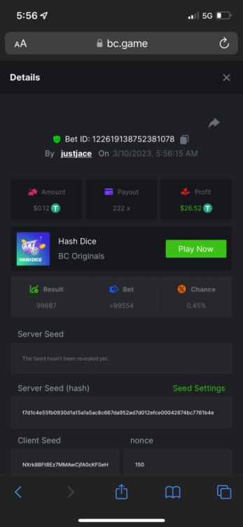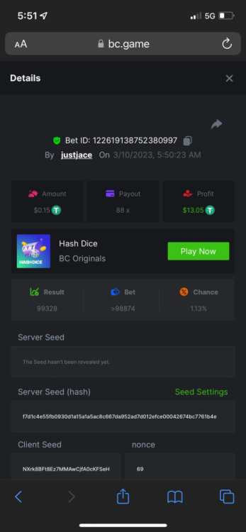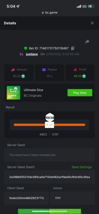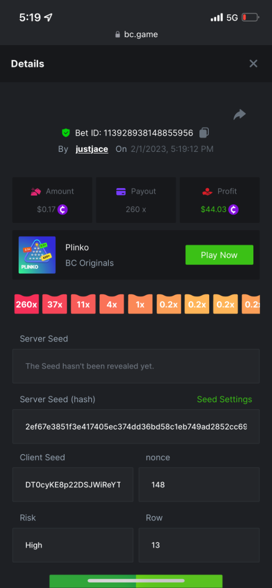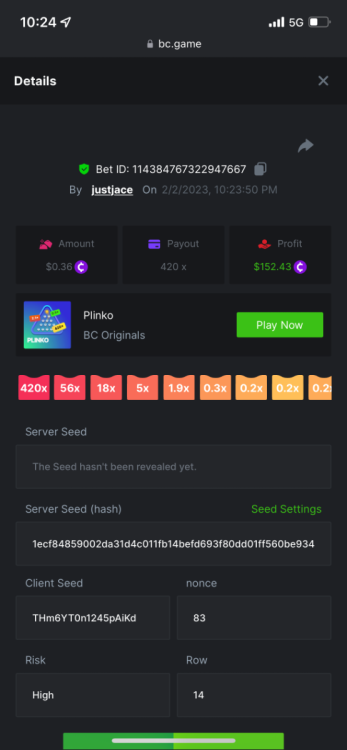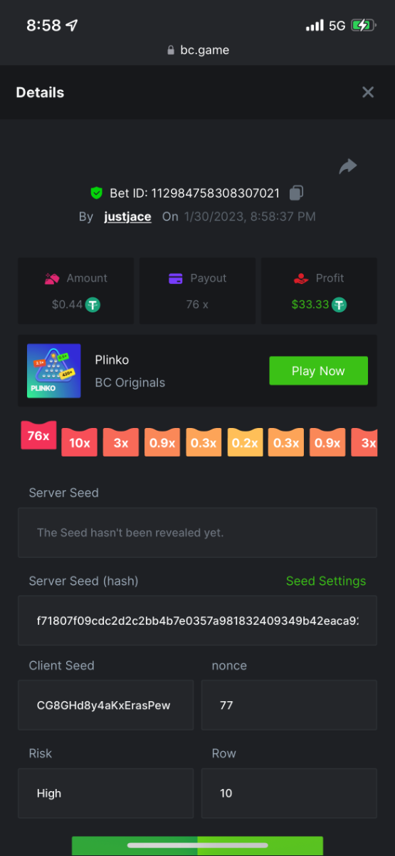 5.1x: https://bc.game/#/sd/118ROTNAR84R9V 8x: https://bc.game/#/sd/118RQVPP8BQYAB 11x: https://bc.game/#/sd/118RPW4RVZQVPV 56x: https://bc.game/#/sd/118RRFI8VER3TF 81.5x: https://bc.game/#/sd/118RS6P6T5KLJN 100x: https://bc.game/#/sd/118U0YISWJW5CJ