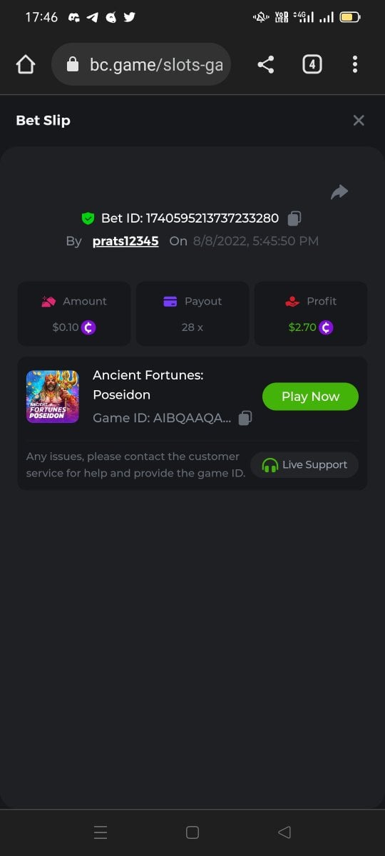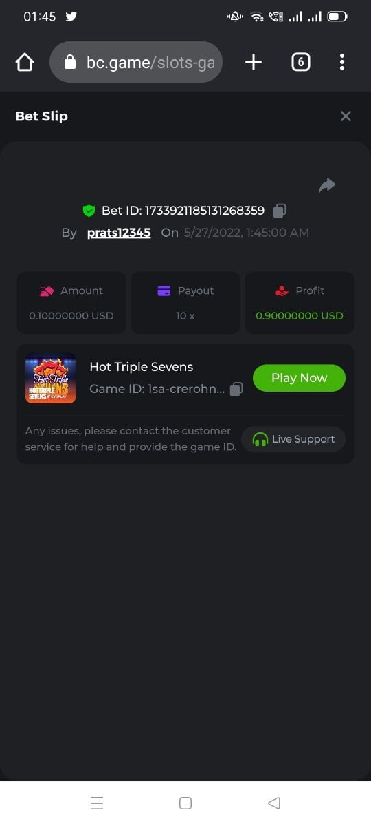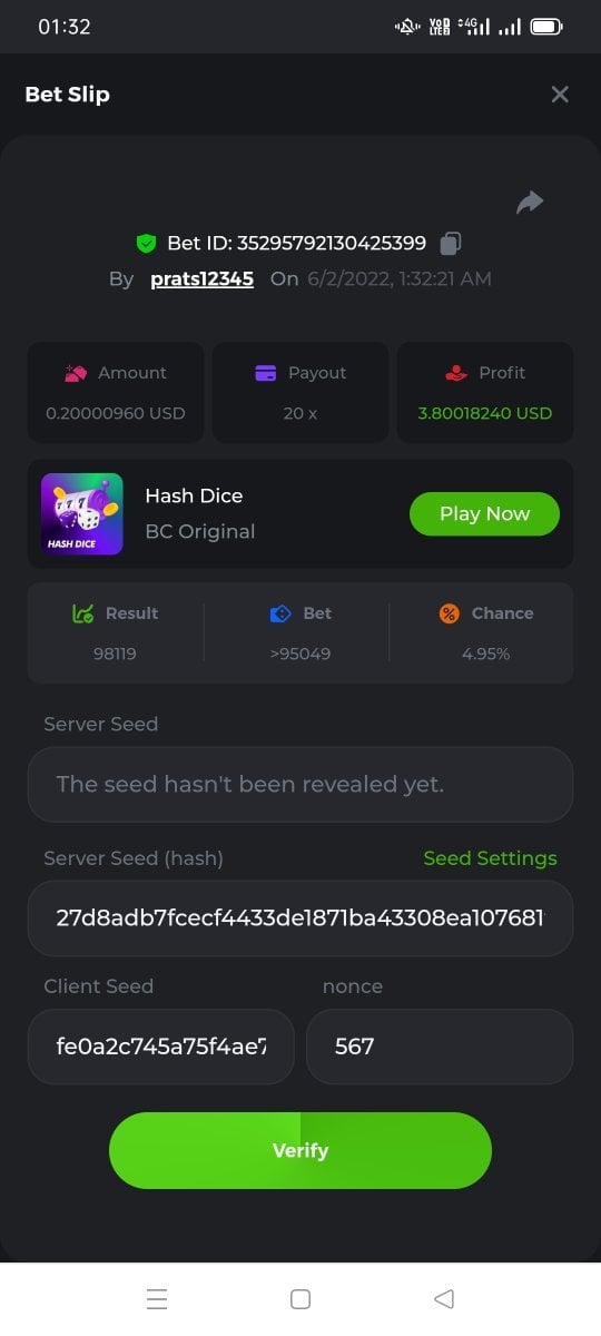 https://bc.game/sd/?sd=10KZ73TY38IHOZ Just to make it clear regarding the Bet amount which is 0.20$ posting a full screenshot of the same below: