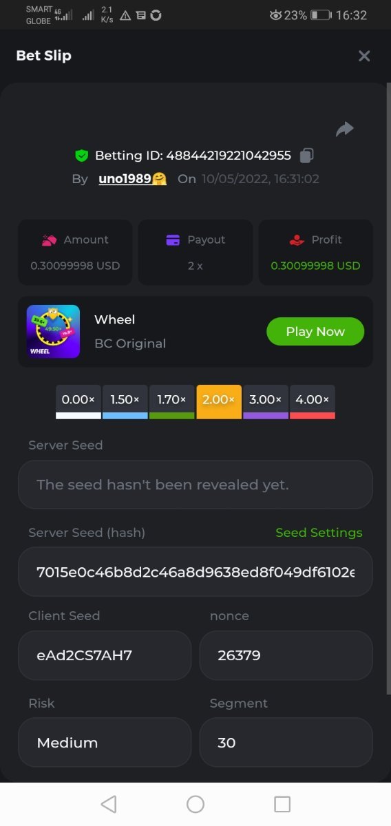 12. Follow BCGame on Instagram (screenshot & IG username required). "" "username ig" "" Uno demonyo Follow BCGame on Twitter (screenshot & twitter handle required). Twitter user @unodemonyo Follow BCGame on Facebook (screenshot & FB username required). Facebook name. Uno demonyo Win a bet in Cave of Plunder on 7.50x payout (Completing all book symbols). https://bc.game/sd/?sd=10INW650YZD5AR Win a bet by getting a natural Blackjack (A+K/Q/J/10) with only red cards in it. https://bc.game/sd/?sd=10IO6PWL3QSKYB Get a 49.50x on Wheel (50 segments, High risk). https://bc.game/sd/?sd=10IO7UYFPPH9G3 Enable 2FA for your BC.Game account (If it's already activated, keep it activated during event week).