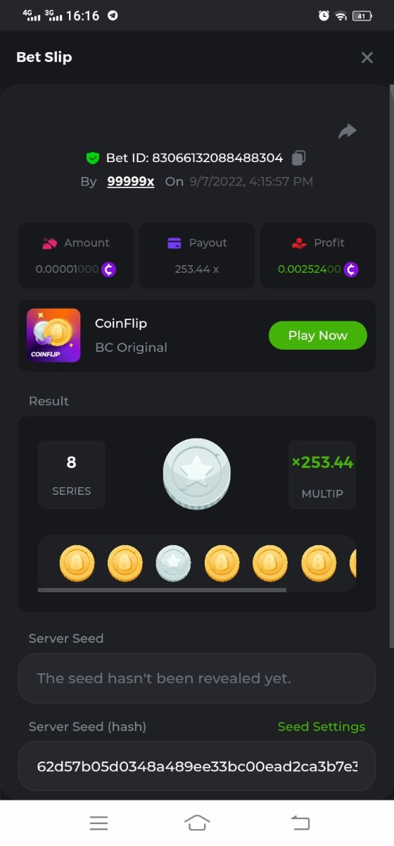 YESLLLLL Posted September 7, 2022 Share Posted September 7, 2022 7 hours ago, Black Tiger said: Read Carefully Before Start To Hunt Forum Challenges #7 : CoinflipHunt :Win the highest pay outMin Payout requirement 100xMin Level 4️Duration Starting : Now End time : 23.59 UTC Time How to Join? Only Post on BC.Game Telegram Official HERE Make screenshot + paste your bet link + Hashtag #daily_challenges To get bet link can check HERE Any coin allowedReward Prizes 1st Place....... $7 BCD2nd Place..... $5 BCD3rd Place...... $4 BCD 🎖4th Place......$3 BCD5th-10th Place......$1 BCD 🏵 Winners will be announcing next day after Roll Point ========================== On Going Event $4,000 Top Tier Playtech Multiplier Battle! $2,500 Keno Multiplayer Challenge #45 E-sports Show off & Grab 300$ !$250 BC.GAME SPORTS PARLAYS CHALLENGES #19$500,000 Spinomenal's Grand Holiday Tournament $162,000 Tournament by Spadegaming!Forum Daily ChallengesDiscord Daily CHallengesTelegram Daily Challenges Telegram user name : @Hwar5555 https://bc.game/sd/?sd=10SGZEIATNH2J7 Link to comment Share on other sites More sharing options...