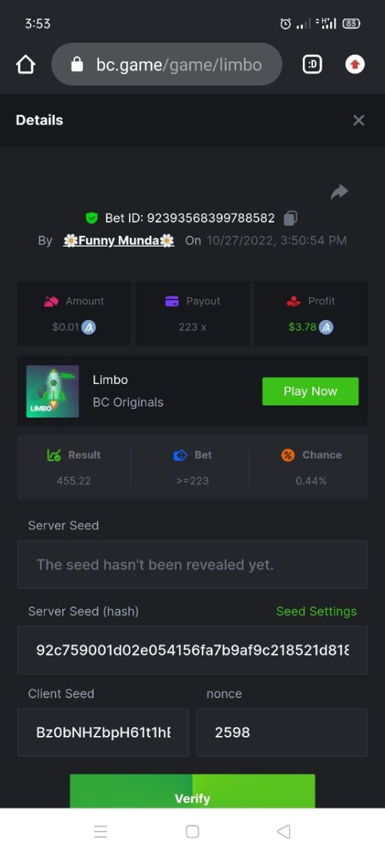 Black Tiger Posted October 27, 2022 Share Posted October 27, 2022 (edited) Read Carefully Before Start To Hunt Daily Challenges #51: LIMBOHunt :Win the highest pay outMin Payout requirement 100xMin Level 4️Duration Starting : Now End time : 23.59 UTC Time How to Join?Make screenshot + paste your bet link + UID or Profile link Mini bet amount - 0.01$ Any coin allowedReward Prizes 1st Place....... $7 BCD2nd Place..... $5 BCD3rd Place...... $4 BCD 🎖4th Place......$3 BCD5th - 10th Place......$1 BCD 🏵 Winners will be announcing next day after Roll Point Edited October 27, 2022 by vinrek 1 Link to comment Share on other sites More sharing options...