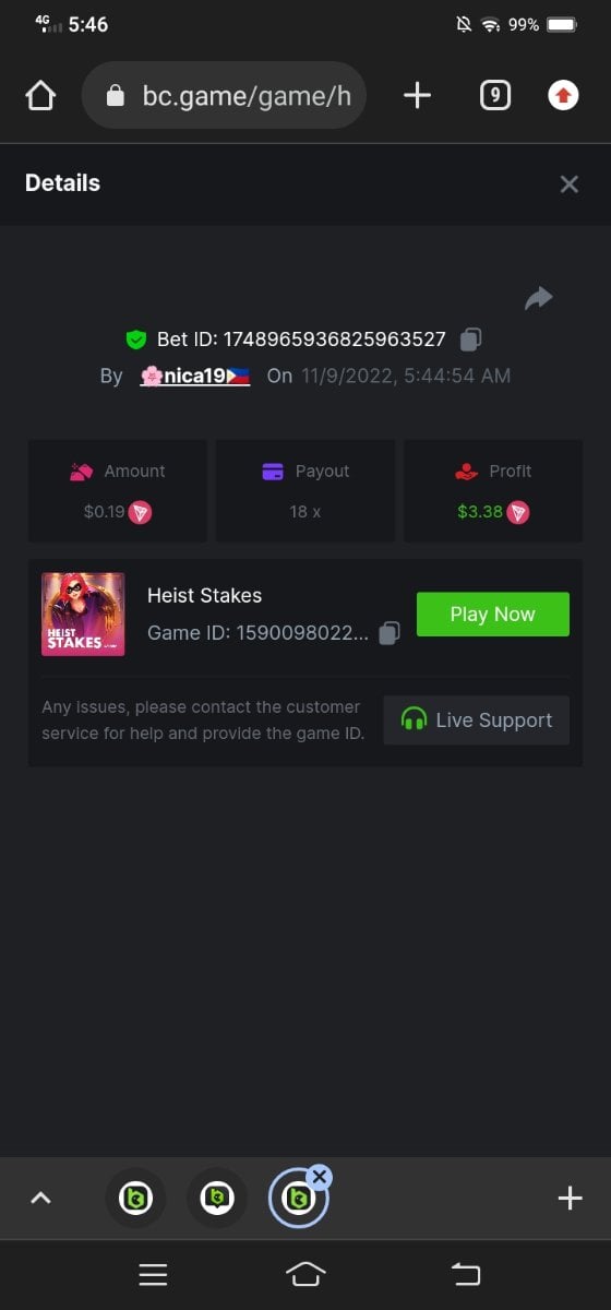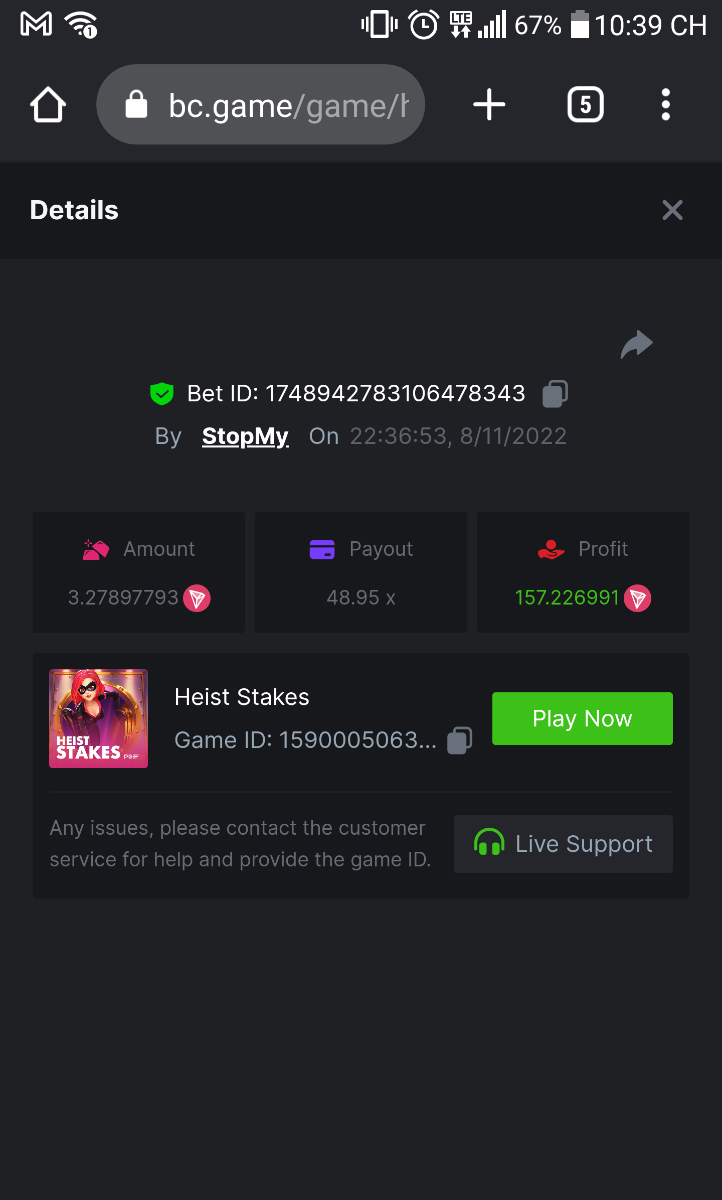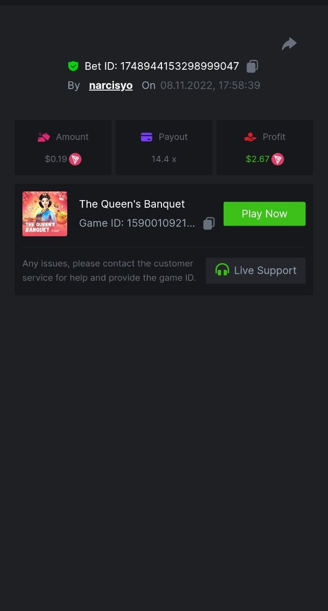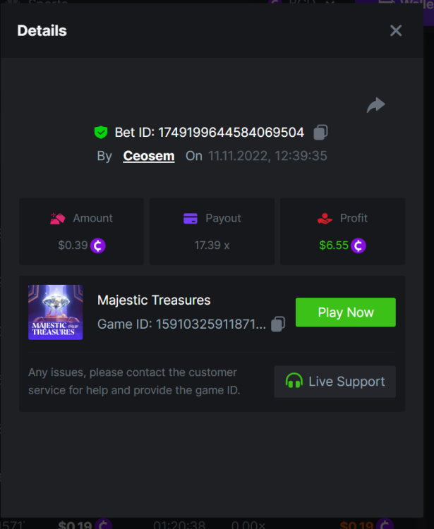 • In the same post, upload a screenshot of your win by clicking the game ID WITH VIEW IN USD mode ENABLED (accessible at the bottom of dropdown menu for your wallet up top, and Submit Reply. Done! This way, we can ensure that your bet indeed met the minimum requirement at the time of placing it: