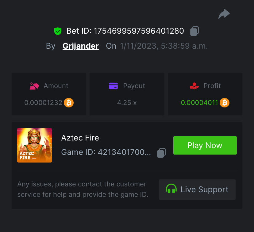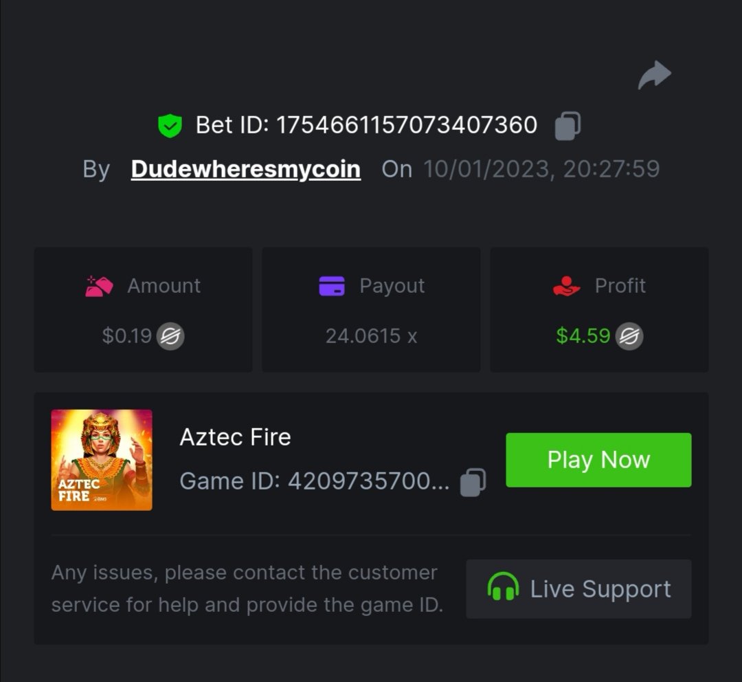Sm0kes Posted January 11, 2023 Share Posted January 11, 2023 https://bc.game/#/sd/1115B6APJNOLJN 50.52x https://bc.game/#/sd/1115BKDS5MFEOJ (190.59x)(green chilli wow moment https://bc.game/#/sd/1115COCBP37OK3 (56.0224x) Tiger Jungle https://bc.game/#/sd/1115D5V2NDQ58Z (125.0125x) aztec fire wow moment smokes Link to comment Share on other sites More sharing options...