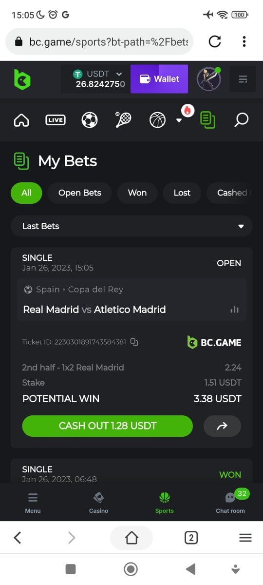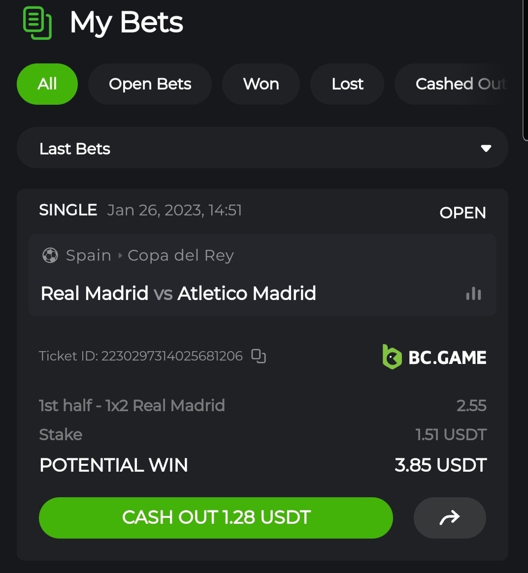 Tato_123 Posted January 27, 2023 Author Share Posted January 27, 2023 results EspañaCopa del Rey Real Madrid CF vs Atlético Madrid 26/junary/20:00 utc 1-1 after the extension ( 3-1 ) @Tunghitk6 odds 2.24 stake 1.51$ price 1) 6$ Link to comment Share on other sites More sharing options...