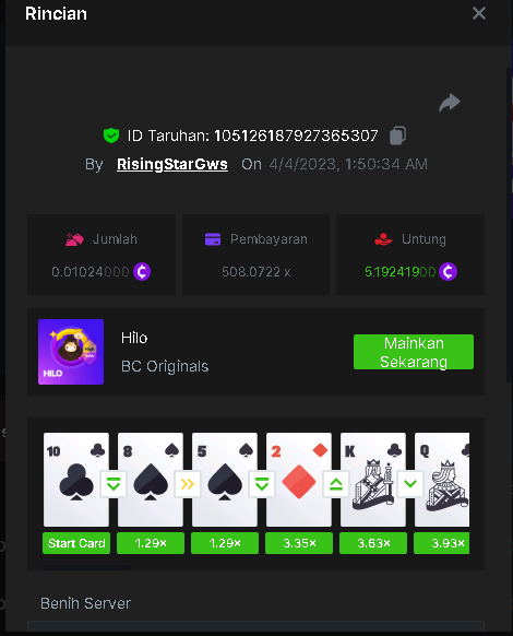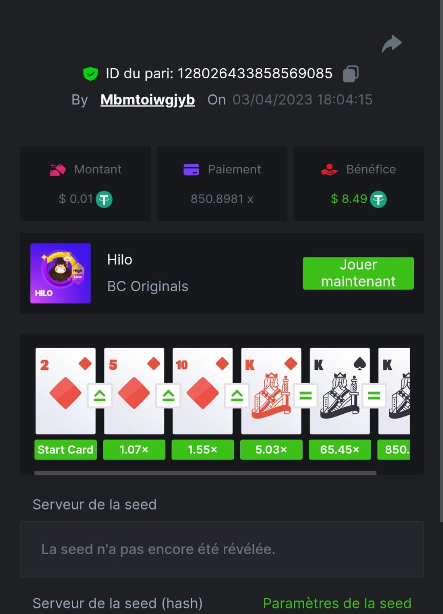 Maksypro Posted April 3, 2023 Share Posted April 3, 2023 (edited) Read Carefully Before Start To Hunt Daily Challenges #194 HI-LO Hunt : Win the highest multiplier Min Payout requirement X100 Min Level 4 ️Duration Starting : Now End time : 23.59 UTC Time How to Join? Make screenshot + paste your bet link + UID or Profile link Mini bet amount - 0.01$ Any coin allowed Reward Prizes 1st Place.....$7 BCD 2nd Place.....$5 BCD 3rd Place.....$4 BCD 4th Place.....$3 BCD 5th Place.....$2 BCD 🏵 Winners will be announcing next day after Roll Point! Edited April 3, 2023 by Maksypro Link to comment Share on other sites More sharing options...