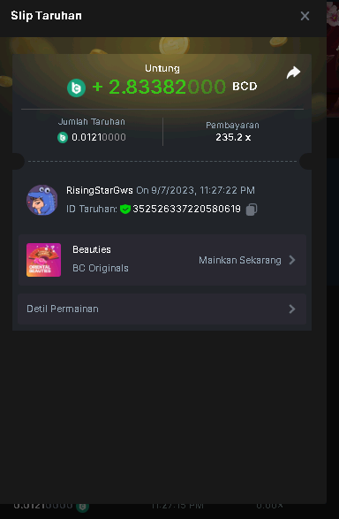 Moderator Giandreas Posted September 8, 2023 Author Moderator Share Posted September 8, 2023 List of winner daily Forum challenges #351 1st place . . . . 7$ BCD - RisingStarGws - 235.2x 2nd place . . . . 5$ BCD - Oppo0107 - 232.8x 3rd place . . . . 4$ BCD - Kristalina - 212.4x 4th place . . . . 3$ BCD - Vencendores - 100.4x 5th place . . . . 2$ BCD - Thebue19x - 93x Please,don't forget UID for your post How to claim your reward for: Double Flashdrop | Daily Challenges??? These steps help us faster to verify. Step by step how to claim : DM/PM Me (forum) And wait for accepting.( If you accepted and didn't answer for 5 min you will be removed and have to join again) Share the screenshot Share the win bet link (daily challenges) Share UID or Profile linkWait for a response Link to comment Share on other sites More sharing options...