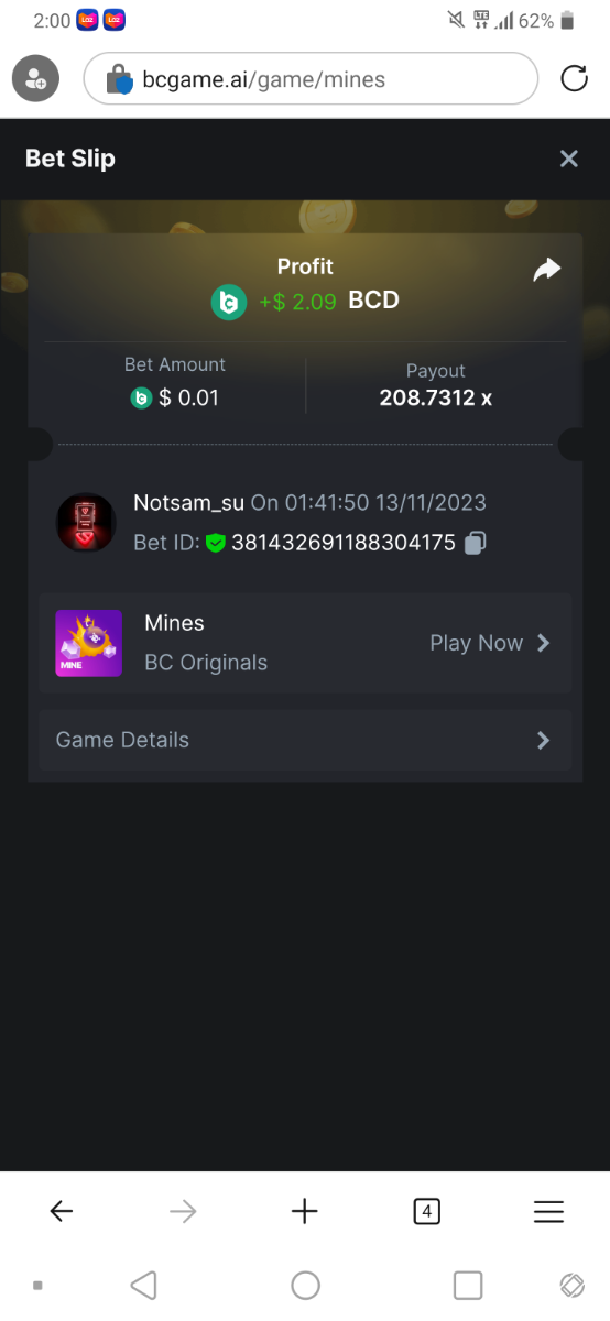 Moderator Giandreas Posted November 12, 2023 Moderator Share Posted November 12, 2023 Read Carefully Before Start To Hunt Forum Daily Challenges #416Hunt : Mines Win the highest pay out Min Payout : x50 Min Level 4 ️Duration Starting : Now End time : 23.59 UTC Time How to Join? Make screenshot + paste your bet link + UID or Profile link Any coin, with min bet 0.01 USD is allowed (jb/bb/bcl not allowed) Reward Prizes 1st Place.....$7 BCD 2nd Place.....$5 BCD 3rd Place.....$4 BCD 4th Place.....$3 BCD 5th Place.....$2 BCD 🏵 Winners will be announcing next day after Roll Point! Link to comment Share on other sites More sharing options...