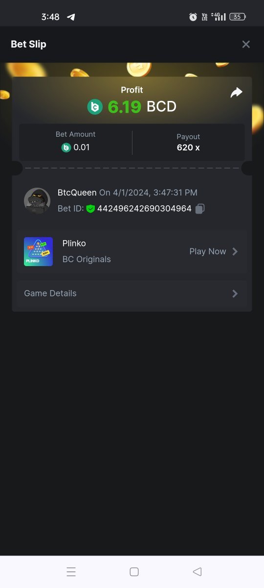 Moderator Giandreas Posted April 1, 2024 Moderator Share Posted April 1, 2024 Read Carefully Before Start To Hunt Forum Daily Challenges #557Hunt : Plinko Win the highest pay out Min Payout : 130x Min Level 10 ️Duration Starting : Now End time : 23.59 UTC Time How to Join? Make screenshot + paste your bet link + UID or Profile link Any coin, with min bet 0.01 USD is allowed (jb/bb/bcl not allowed) Reward Prizes 1st Place.....$7 BCD 2nd Place.....$5 BCD 3rd Place.....$4 BCD 4th Place.....$3 BCD 5th Place.....$2 BCD 🏵 Winners will be announcing next day after Roll Point! Link to comment Share on other sites More sharing options...