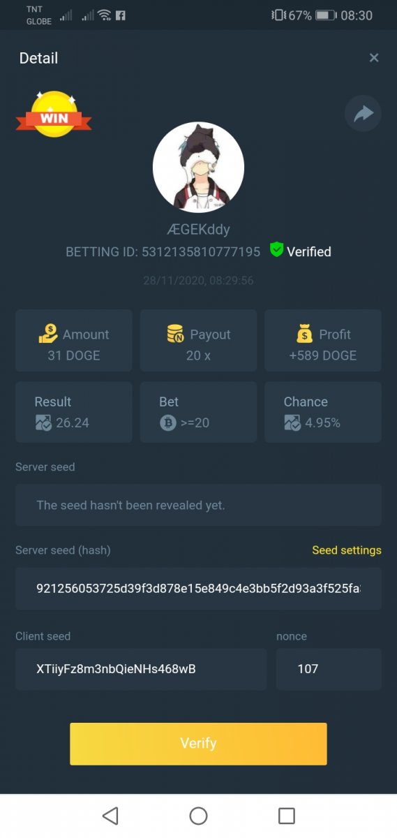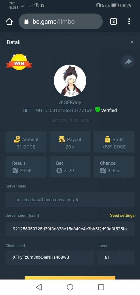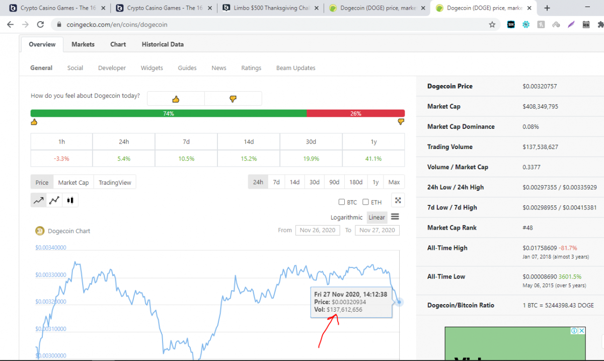 GKD69 Posted November 27, 2020 Share Posted November 27, 2020 Bet ID: 5278768209857399 Bet ID: 5278768209857400 Bet ID: 5278768209857401 Bet ID: 5278768209857402 Was using coingecko as advised by bcgame support too, to check the doge price in usd. Below is a quick snapshot for easy reference. Spoiler Link to comment Share on other sites More sharing options...