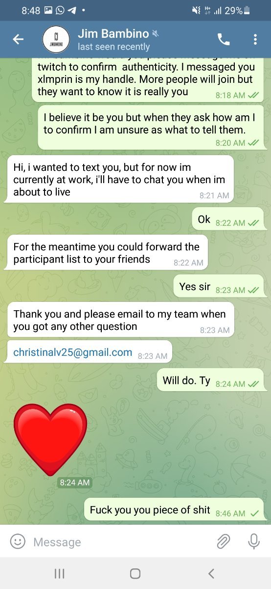 JImBambino Posted February 19, 2022 Share Posted February 19, 2022 People have been sharing fake telegram pages and NFT projects stealing my identity. If I don’t post it here or Twitter it’s not me period. I’m currently only on Twitch and Twitter it will change but I will first announce here and Twitter. don’t follow their fake projects and don’t be scammed Link to comment Share on other sites More sharing options...