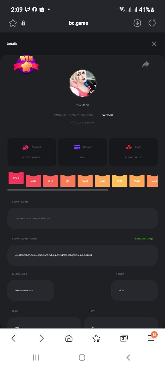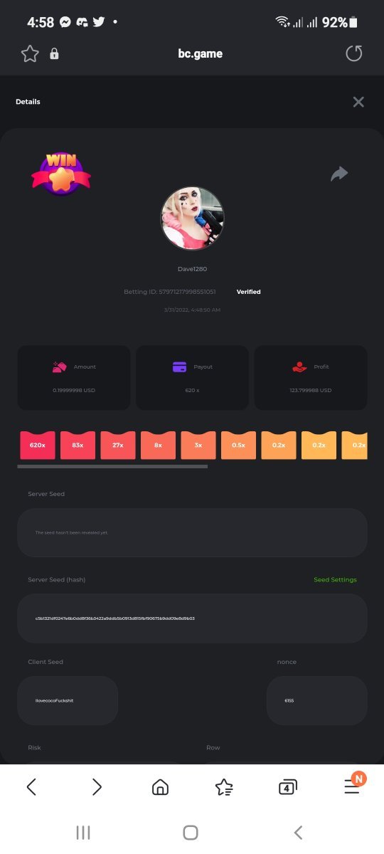 CryptoQueeny Posted June 13, 2022 Share Posted June 13, 2022 I have only been a member of BC Game for a couple of months so i am sure i will have a new favorite moment sometime in the near future but to date i would have to say my favorite moment was when i first decided to turn on auto bet for the "cave of plunder" game. I had decided to place a $2 bet for 50 spins and i walked away. When i came back i was up $400 so i put in another 100 turns auto bet and i thought there was a glitch in the game because fore the next 45 minutes i just kept winning and winning. I ended up with $3000 and before i placed the first auto bet there was only $100 on my balance. Eventually the winning ended, but it was the most amazing feeling to win that sum of money the first time i ever tried the auto bet option. Like i said i am sure there will be moments that top this one in the future but for now i will never forget this lucky streak that not only made my day but helped me pay off a lot of bills so for that i am forever grateful to BC Game!!!! Link to comment Share on other sites More sharing options...