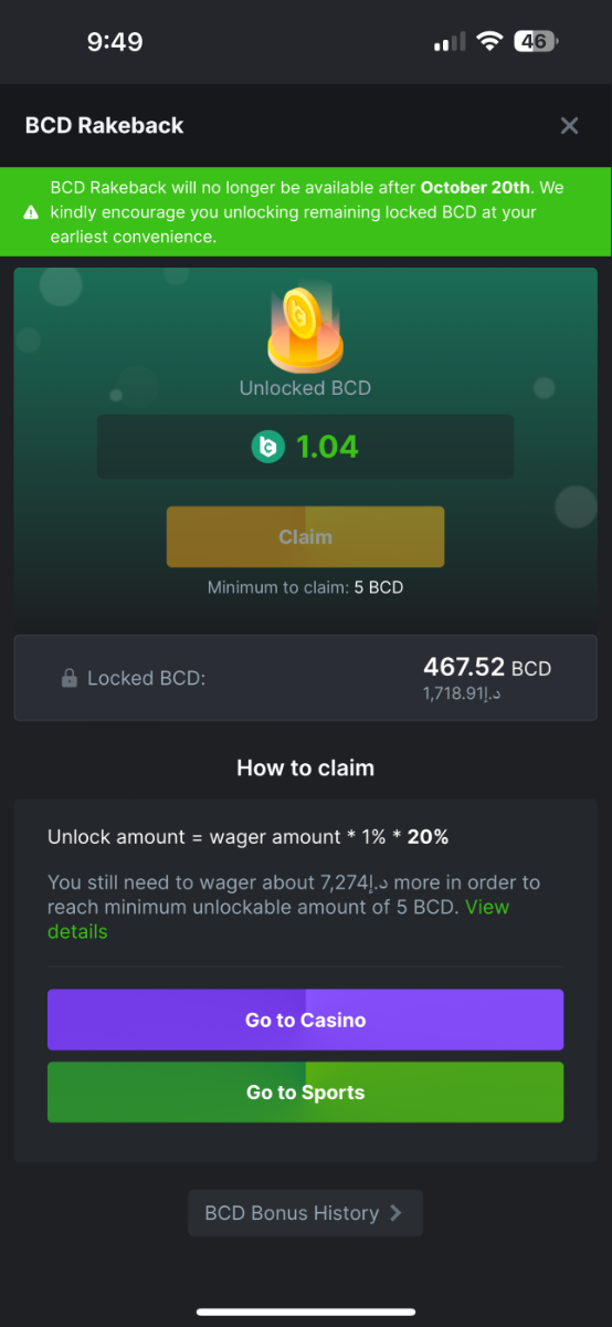 I know there's been a lot, and I mean A LOT of talk and complaints about the BCD unlocking process. I'm certainly not a fan of the system myself. BC.game doesn't want to use the type of bonus most casinos do - you get a chunk of extra money when you deposit but can't withdraw the money until you have wagered a certain multiplier.
